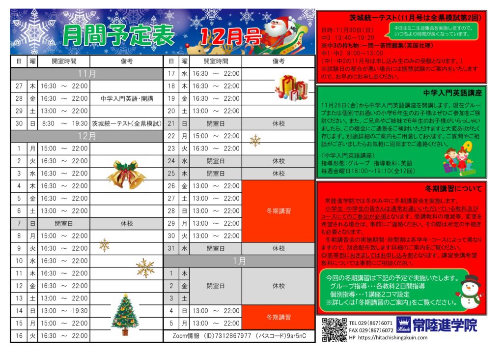 12月月間予定表